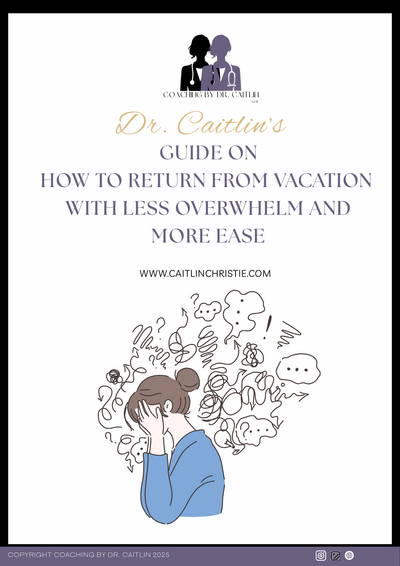 I’m Dr. Caitlin — a family physician, coach, and mom who knows firsthand what it feels like to run on empty while trying to hold everything together.